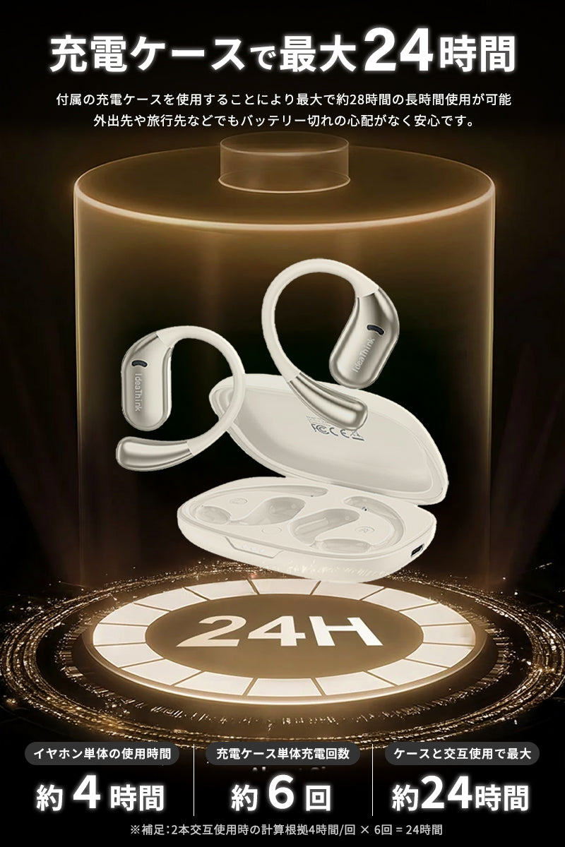 ワイヤレスイヤホン bluetooth イヤホン OWSイヤホン 空気伝導 タッチ操作 耳掛け型 オープンイヤー イヤフォン ブルートゥースイヤホン 最大24時間連続再生 Hi-Fi音質 earphone