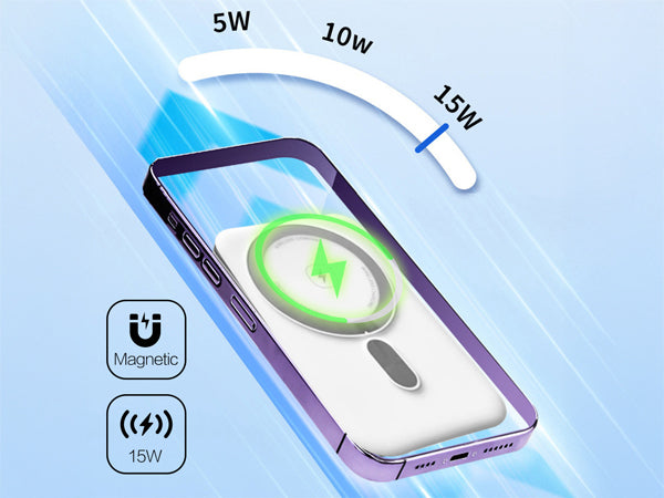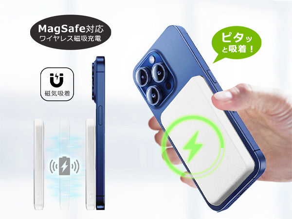 マグセーフ対応でスマートフォンにマグネット磁力吸着し、ケーブルを差すことなくワイヤレスでより効率的で高速な充電が可能です