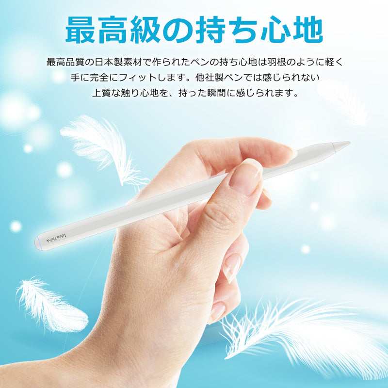 最高品質の日本製素材で作られたタッチペン。羽根のように軽量で、手にフィットします。持った瞬間、他のタッチペンでは感じられない上質な触り心地を実感できます。